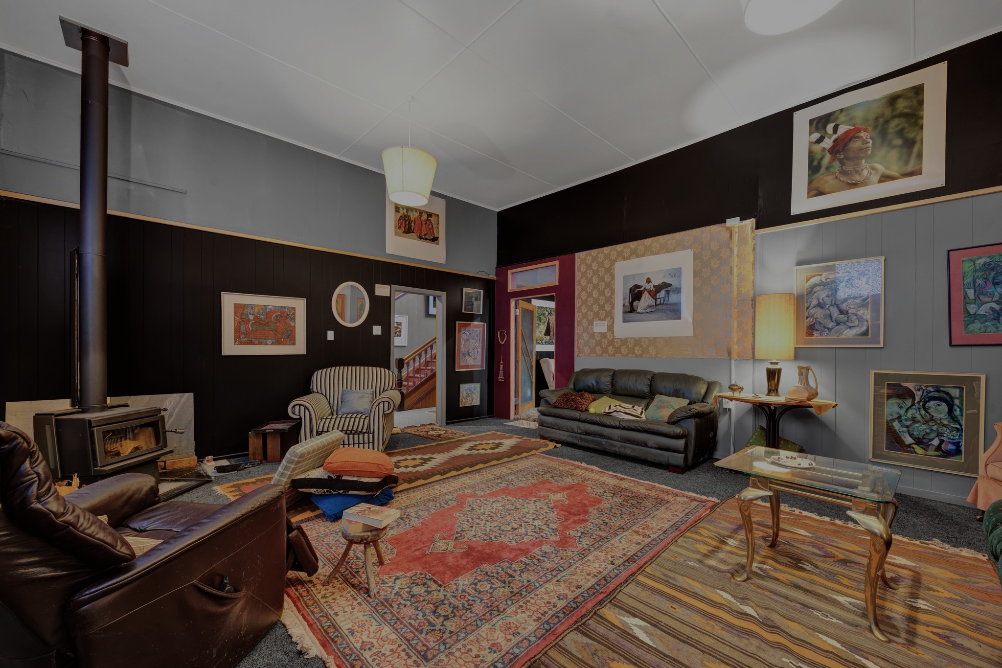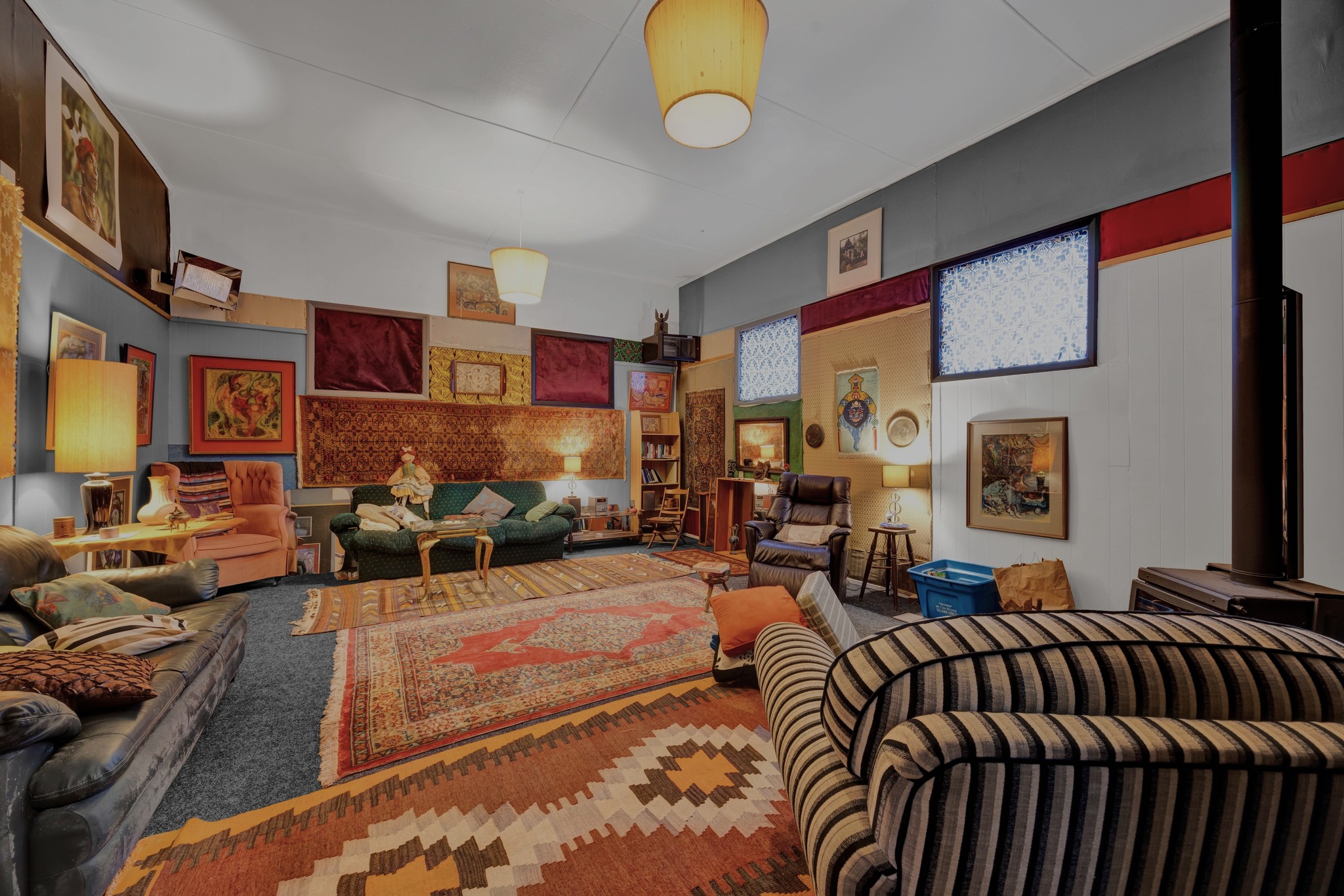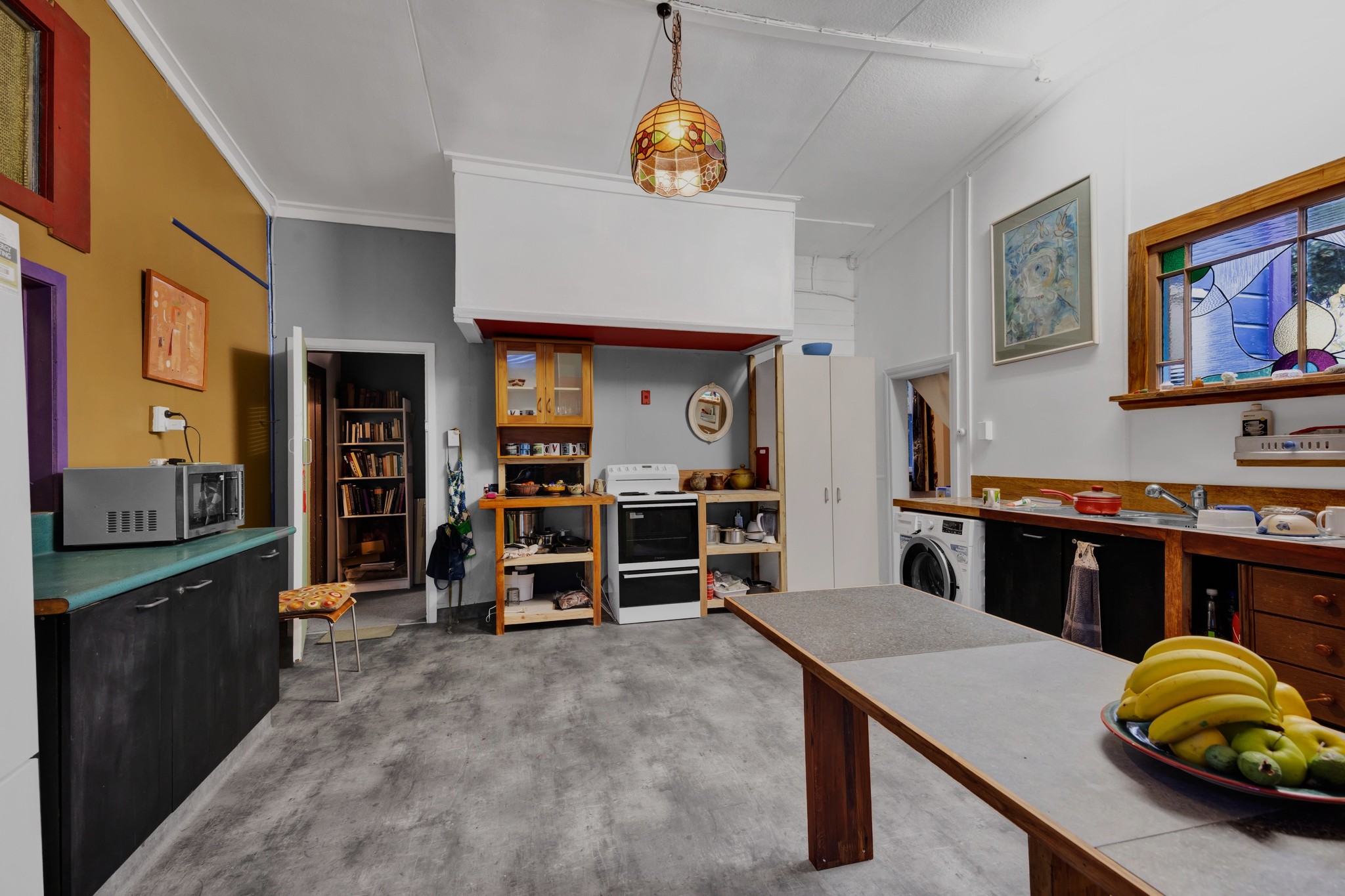 DOWNSTAIRS- 2 large high ceiling lounges- dining/living - with triple sized bedroom - walk-in shower/toilet, commercial kitchen/pantry/study - sunroom extra living..